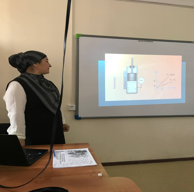 O‘qituvchi ideal gaz bosimi, gaz molekulyar-kinetik nazariyaning asosiy tenglamasi, temperatura tushunchasi, ideal gaz holat tenglamasi va gaz qonunlarini izchil tahlil qilish orqali o‘quvchilarda fizik jarayonlarni sabab-oqibat asosida tushunish ko‘nikmasini shakllantirdi. Gaz molekulalarining tezliklari taqsimoti, Shtern tajribasi hamda Broun harakati kabi tajribaviy dalillar yordamida nazariya va amaliyotning uzviy bog‘liqligi yorqin namoyon etildi.